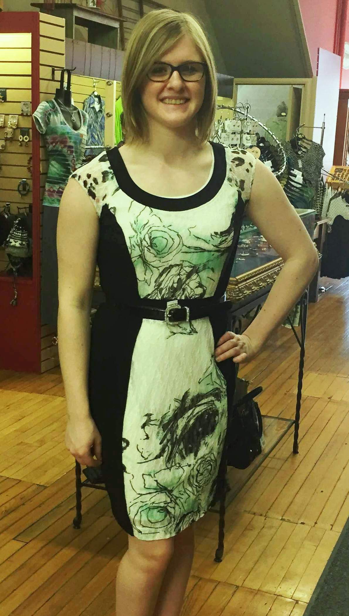 Piccadilly dress with black side panels and Brighton belt. A sure way to look slimmer!
