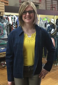 Keren Hart navy jacket (sorry yellow sleeveless shirt is already sold out).